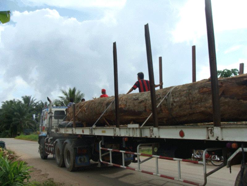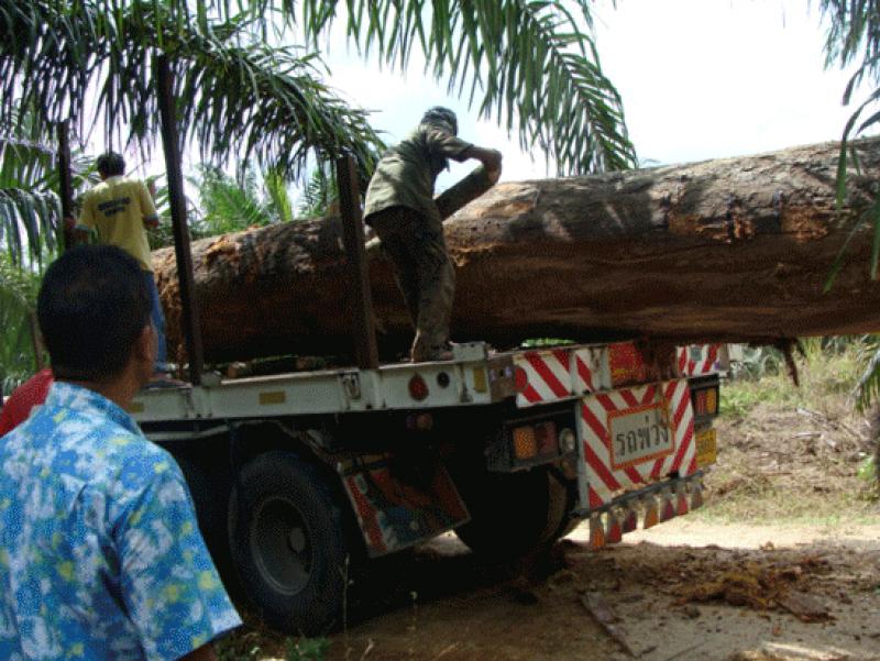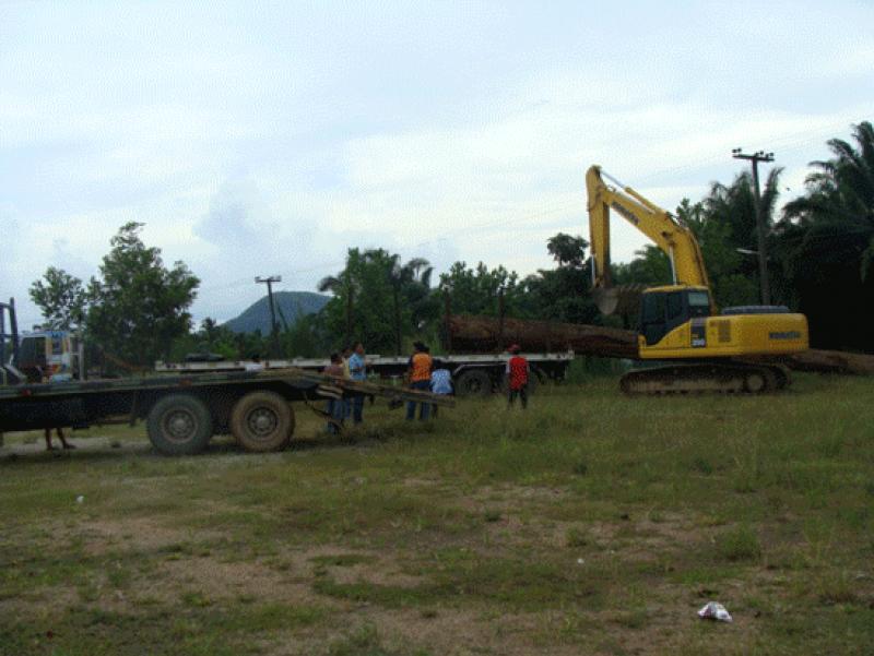 ลากไม้มาไว้ที่อบต.ท่าข้าม