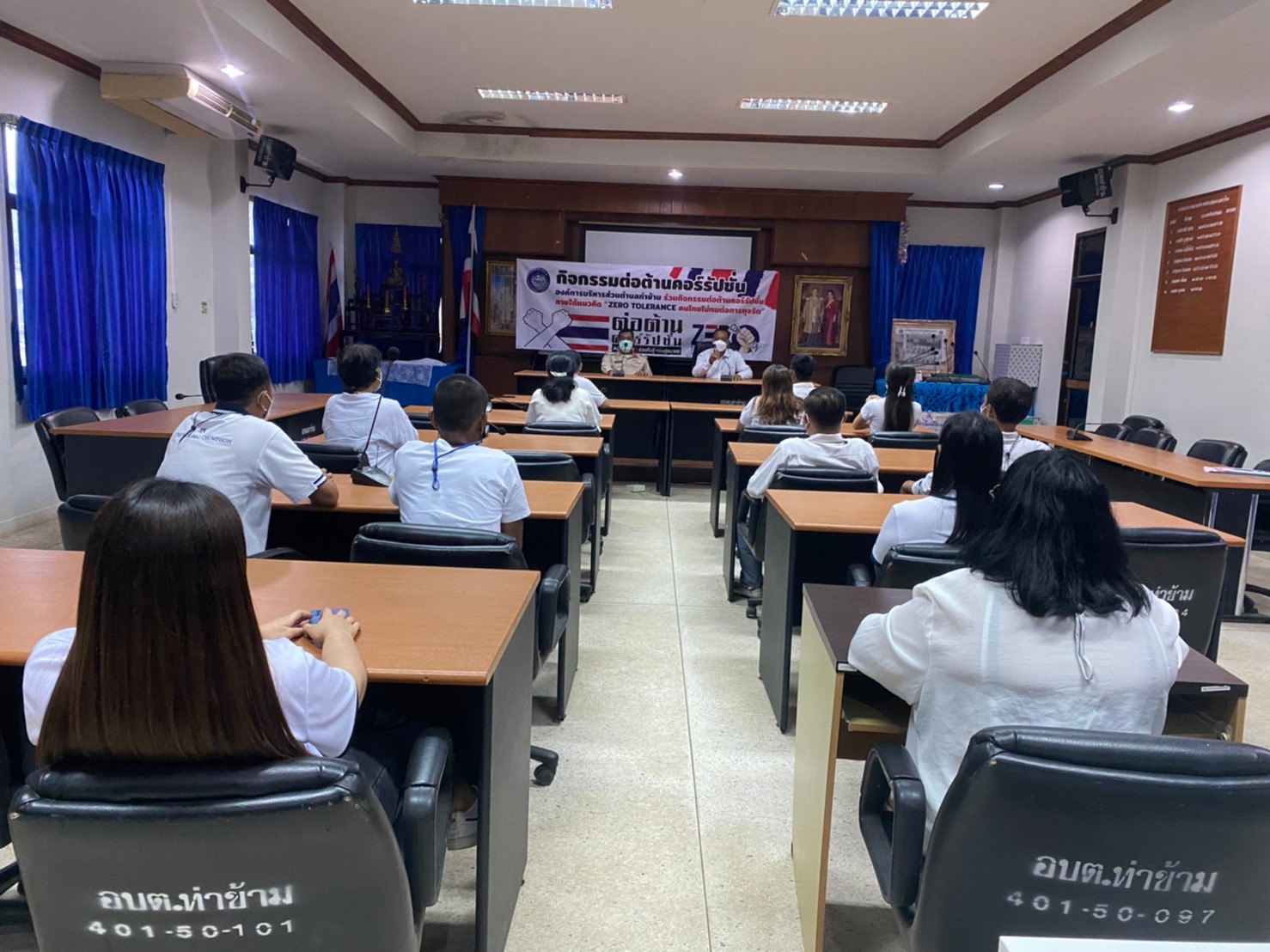 รายละเอียด : ตามที่รัฐบาลได้ให้ความสำคัญในการแก้ไขปัญหาการทุจริตเป็นวาระเร่งด่วนและอาศัยกลไกการประสานความร่วมมือกับภาครัฐ ดังนั้นองค์การบริหารส่วนตำบลท่าข้าม จึงได้เล็งเห็นถึงความสำคัญของการต่อต้านการทุจริตคอร์รับชั่นในองค์กร ทางคณะผู้บริหารโดยนายปิยวัฒน์ ศรีมาลา นายก อบต.ท่าข้าม พร้อมด้วยพนักงานส่วนตำบลและพนักงานจ้าง ได้ร่วมมือกันแสดงเจตนารมย์ในการต่อต้านการทุจริตคอร์รับชั่น (Zero Tolerance) ในปีงบประมาณ พ.ศ. 2565 เมื่อวันที่ 20 มิถุนายน 2565 เวลา 10.00 น. ณ บริเวณที่ทำการอบต.ท่าข้ามและห้องประชุมสภาองค์การบริหารส่วนตำบลท่าข้าม