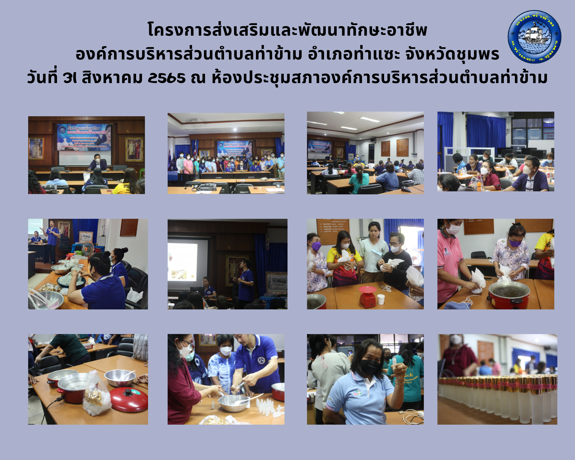 โครงการส่งเสริมและพัฒนาทักษะอาชีพ องค์การบริหารส่วนตำบลท่าข้าม อำเภอท่าแซะ จังหวัดชุมพร วันที่ 31 สิงหาคม 2565 ณ ห้องประชุมสภาองค์การบริหารส่วนตำบลท่าข้าม [31 สิงหาคม 2565]