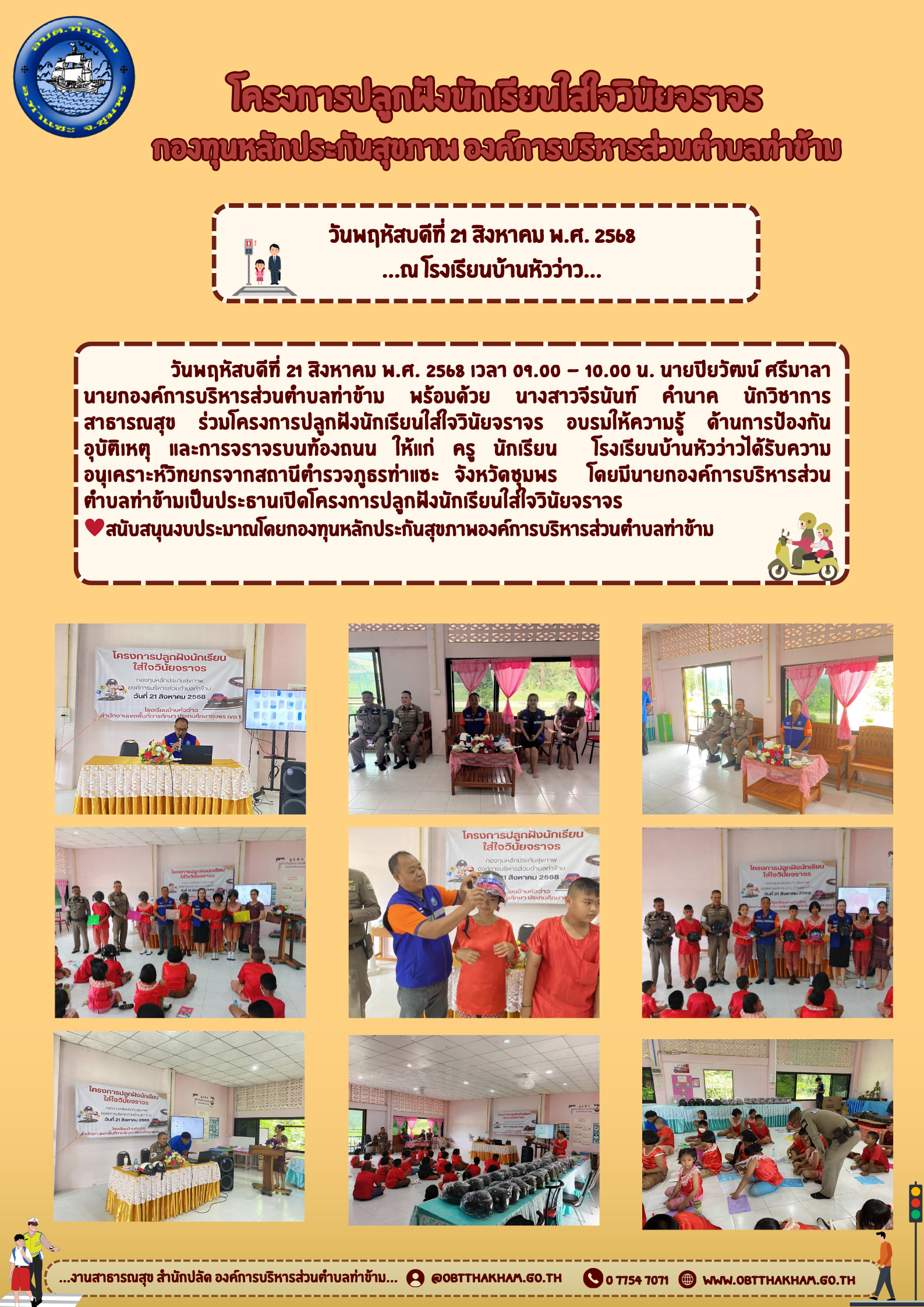 โครงการปลูกฝังนักเรียนใส่ใจวินัยจราจร ณ โรงเรียนบ้านหัวว่าว ♥️สนับสนุนงบประมาณโดยกองทุนหลักประกันสุขภาพองค์การบริหารส่วนตำบลท่าข้าม [21 สิงหาคม 2568]