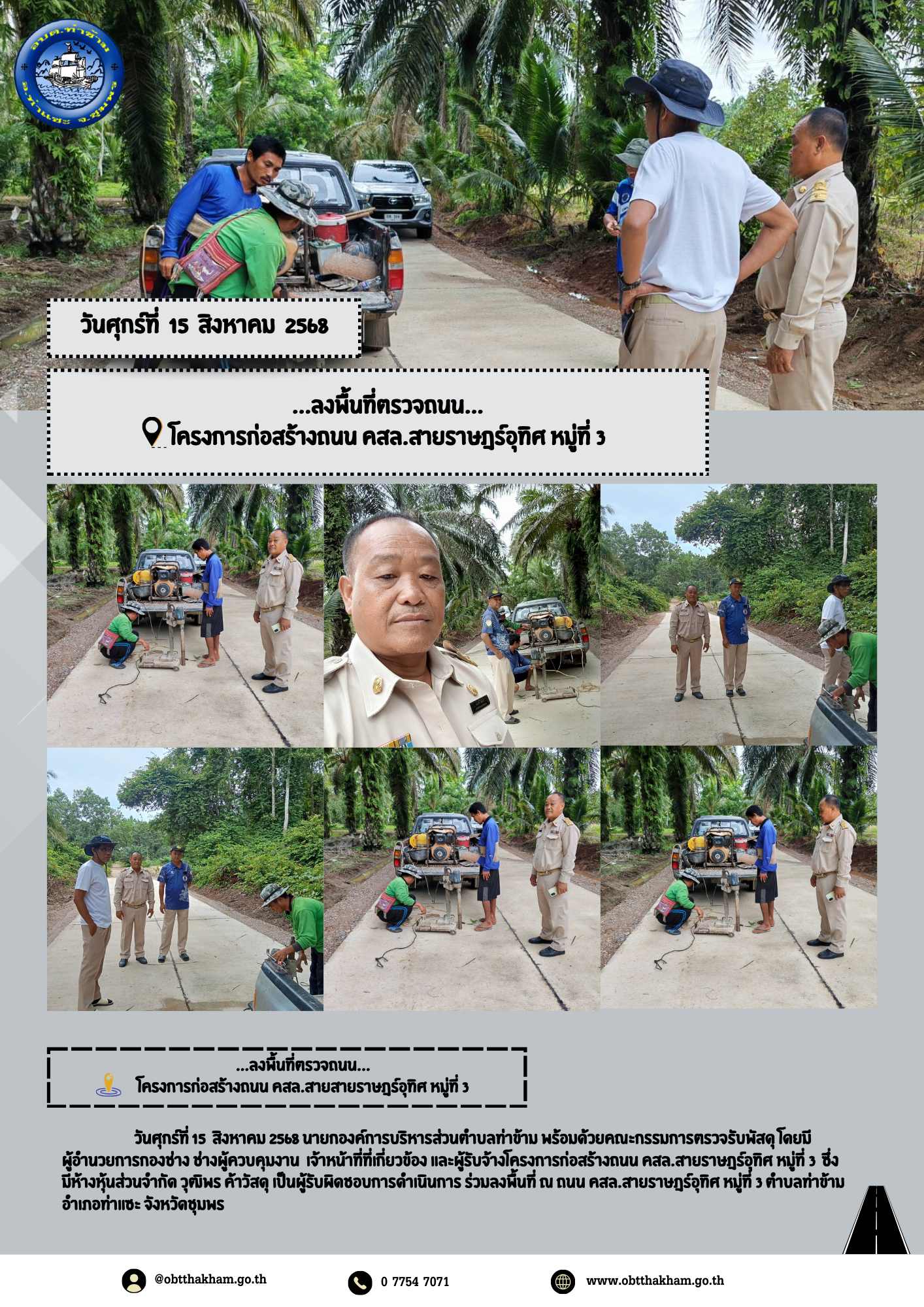 ...ลงพื้นที่ตรวจถนน... โครงการก่อสร้างถนน คสล.สายสายราษฎร์อุทิศ หมู่ที่ 3 [15 สิงหาคม 2568]