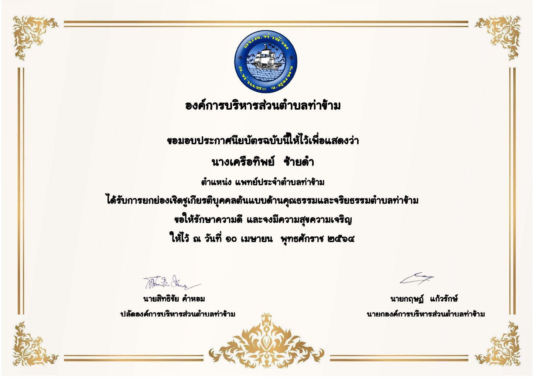 กิจกรรม : ยกย่องเชิดชูเกียรติบุคคลต้นแบบด้านคุณธรรมและจริยธรรมตำบลท่าข้าม