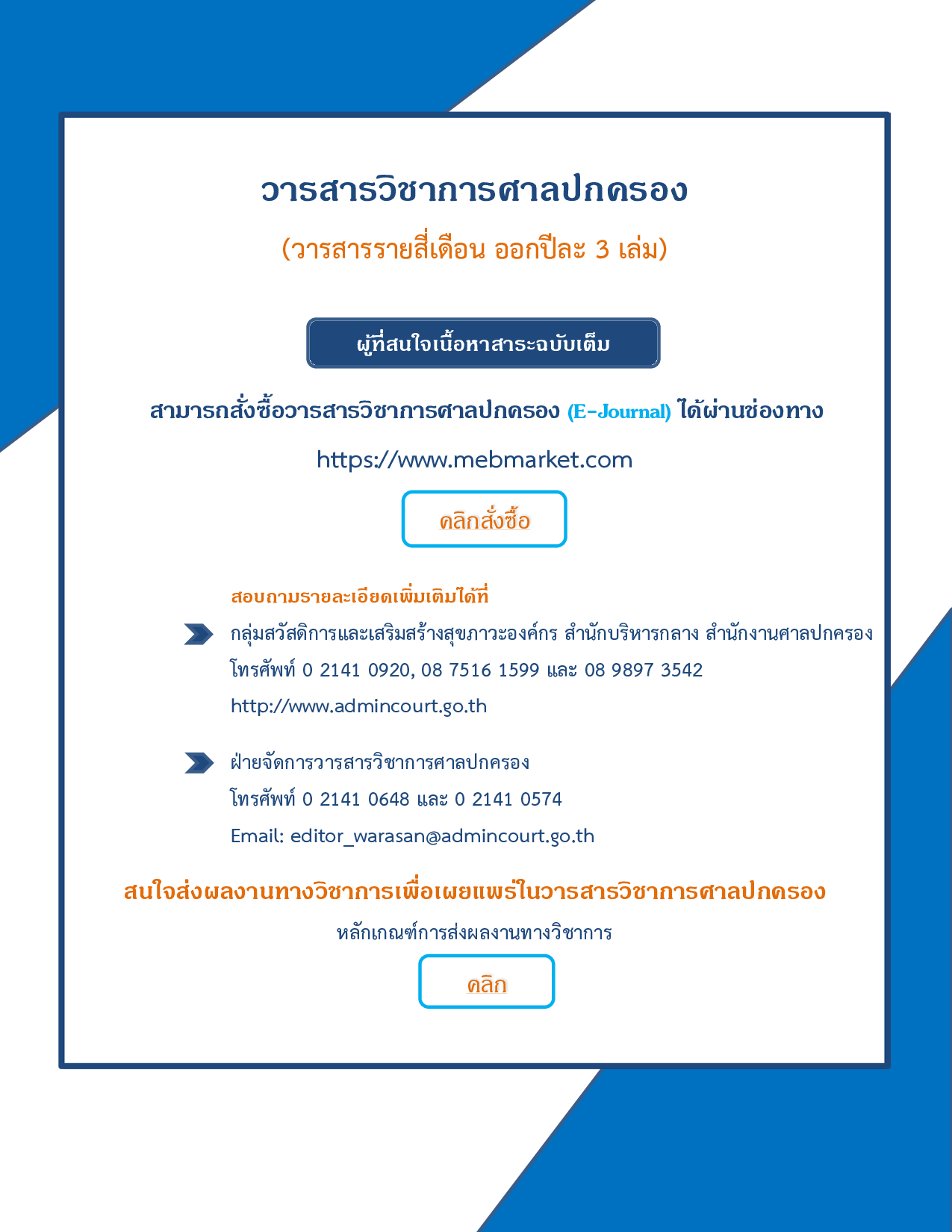 ชื่อเรื่อง : ประชาสัมพันธ์การจำหน่ายวารสารวิชาการศาลปกครอง