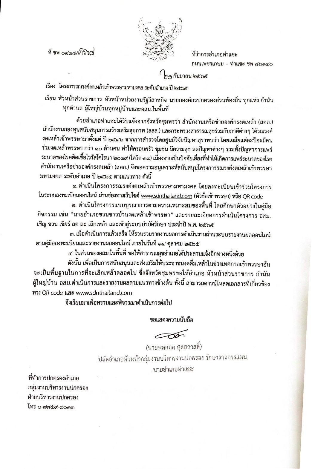 ชื่อเรื่อง : โครงการรณรงค์งดเหล้าเข้าพรรษามหามงคล ระดับอำเภอ ปี 2565