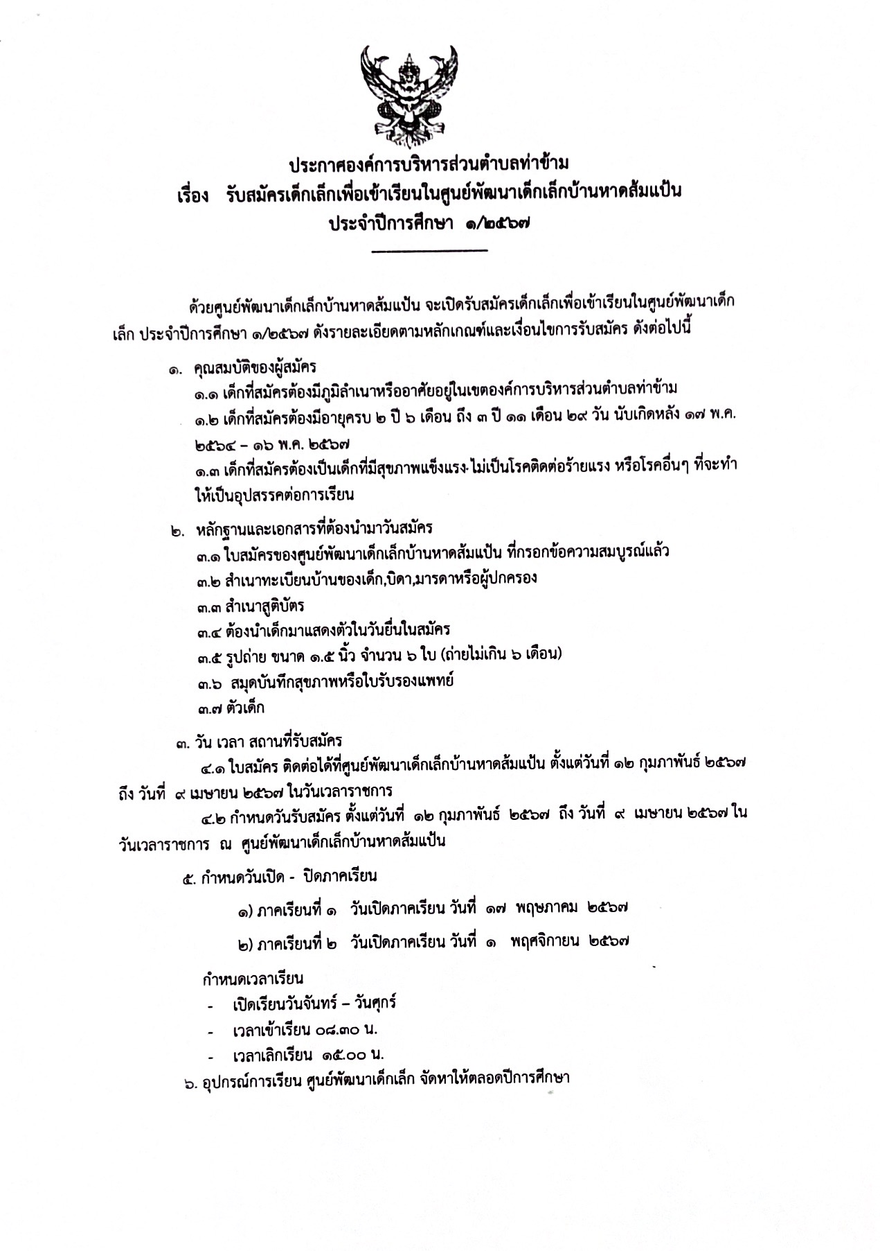 รับสมัครเด็กเล็กศูนย์พัฒนาเด็กเล็กบ้านหาดส้มแป้น