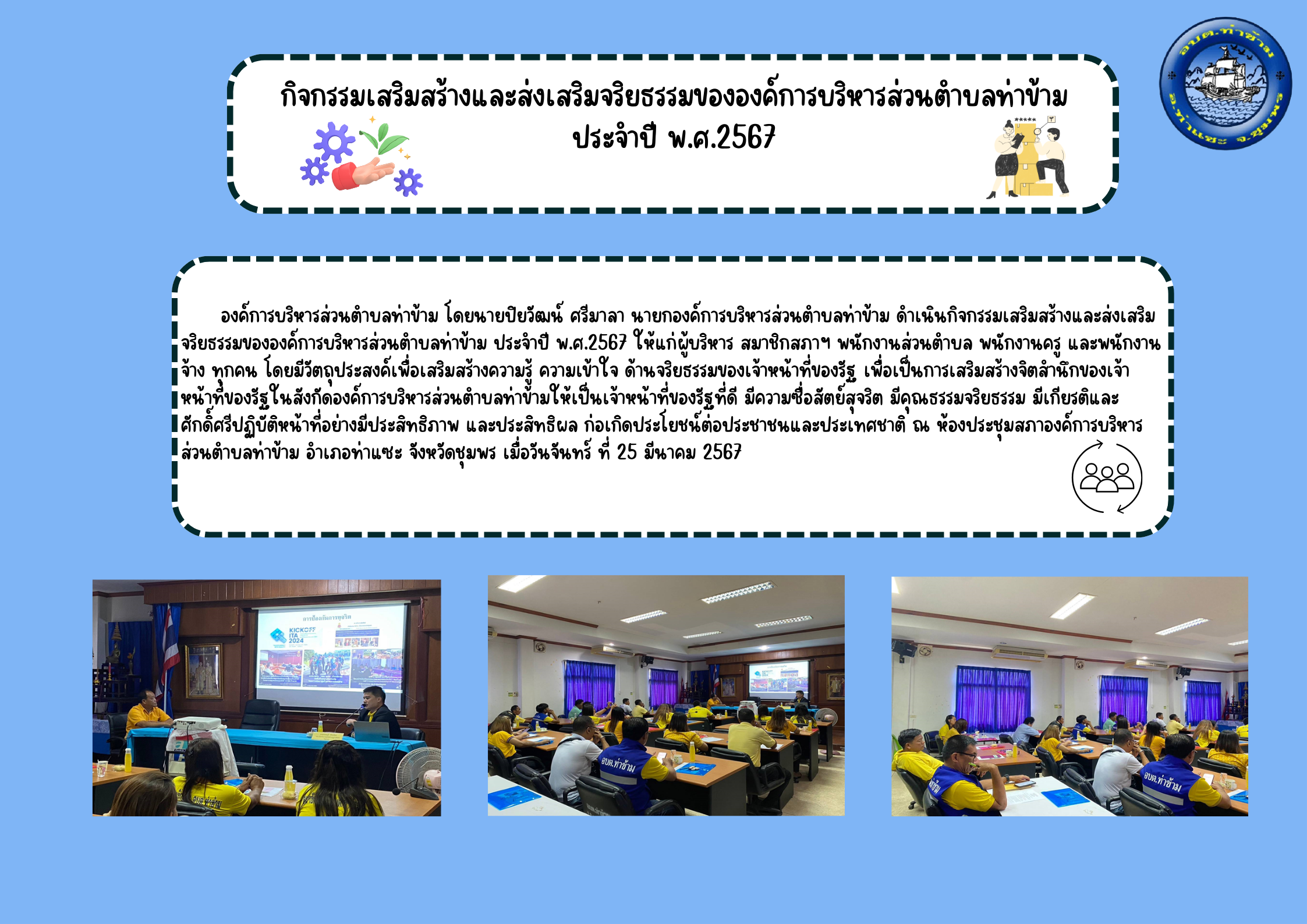 กิจกรรมเสริมสร้างและส่งเสริมจริยธรรมขององค์การบริหารส่วนตำบลท่าข้าม ประจำปีงบประมาณ พ.ศ.2567