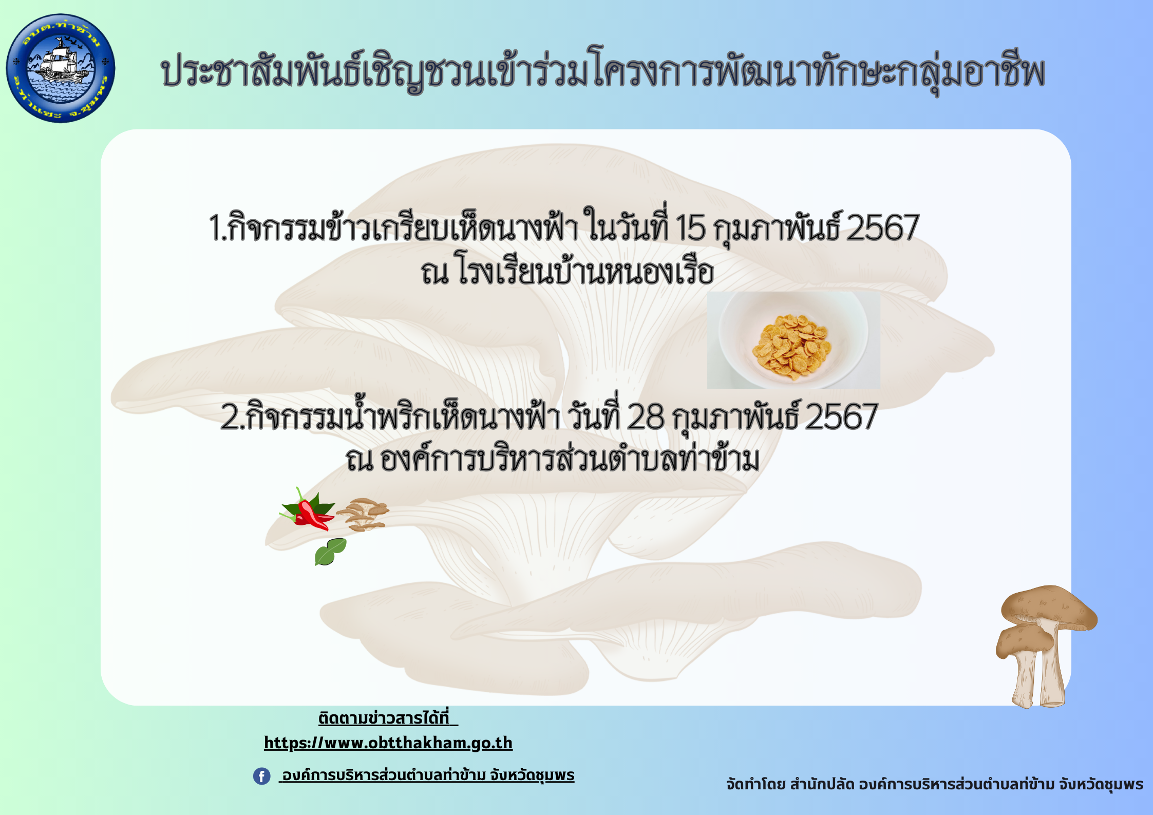 ชื่อเรื่อง : ประชาสัมพันธ์เชิญชวนเข้าร่วมโครงการพัฒนาทักษะกลุ่มอาชีพ