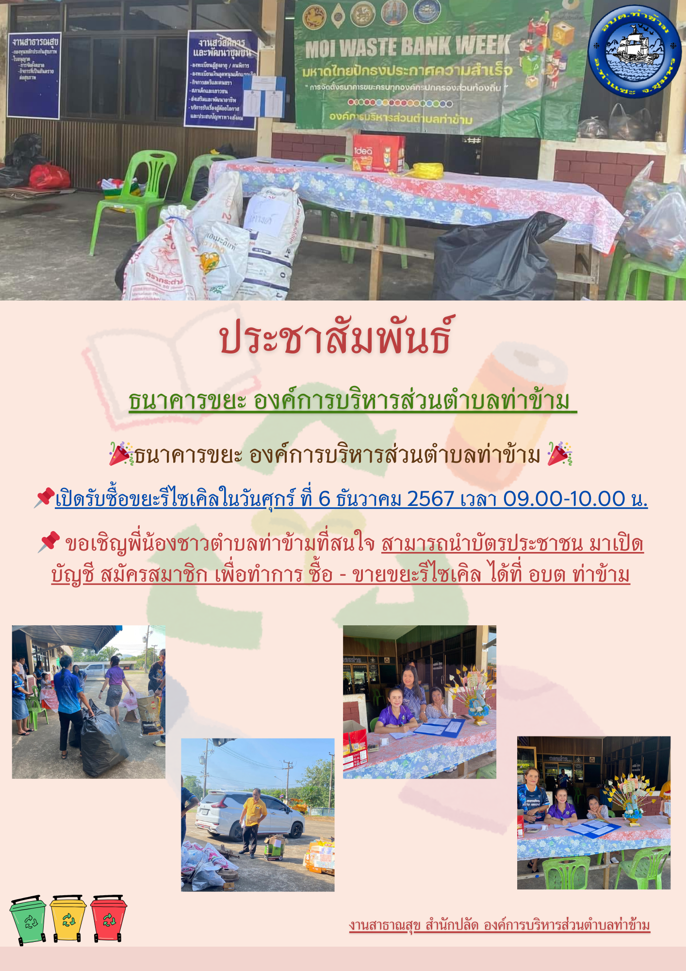 ชื่อเรื่อง : ประชาสัมพันธ์ธนาคารขยะ องค์การบริหารส่วนตำบลท่าข้าม ประจำเดือนธันวาคม