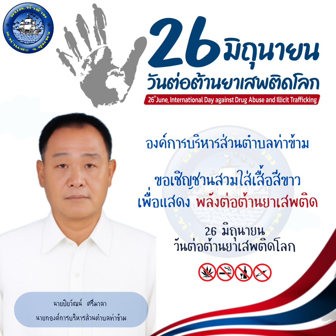 ประชาสัมพันธ์ องค์การบริหารส่วนตำบลท่าข้าม ขอเชิญชวนสวมใส่เสื้อสีขาวเพื่อแสดงพลังต่อต้านยาเสพติด 26 มิถุนายน 2568