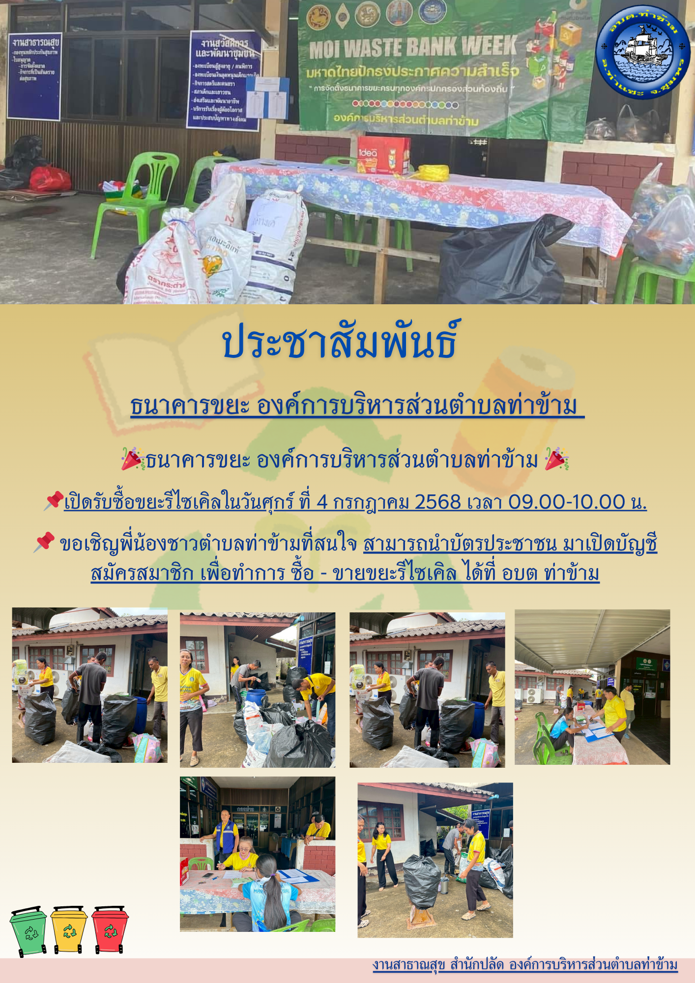 ประชาสัมพันธ์ธนาคารขยะ องค์การบริหารส่วนตำบลท่าข้าม ประจำเดือนกรกฎาคม 2568