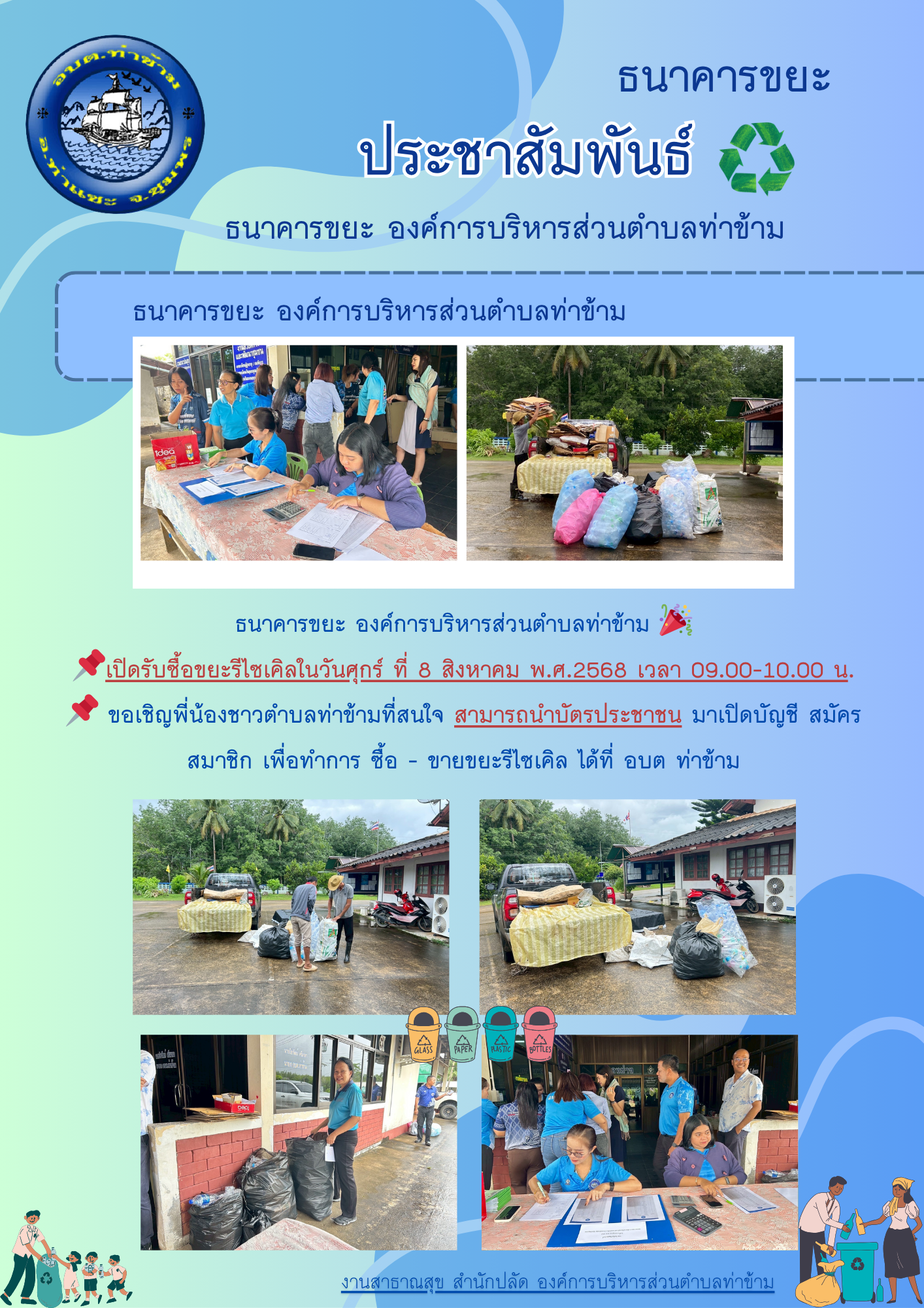 ประชาสัมพันธ์นาคารขยะองค์การบริหารส่วนตำบลท่าข้าม ประจำเดือนสิงหาคม