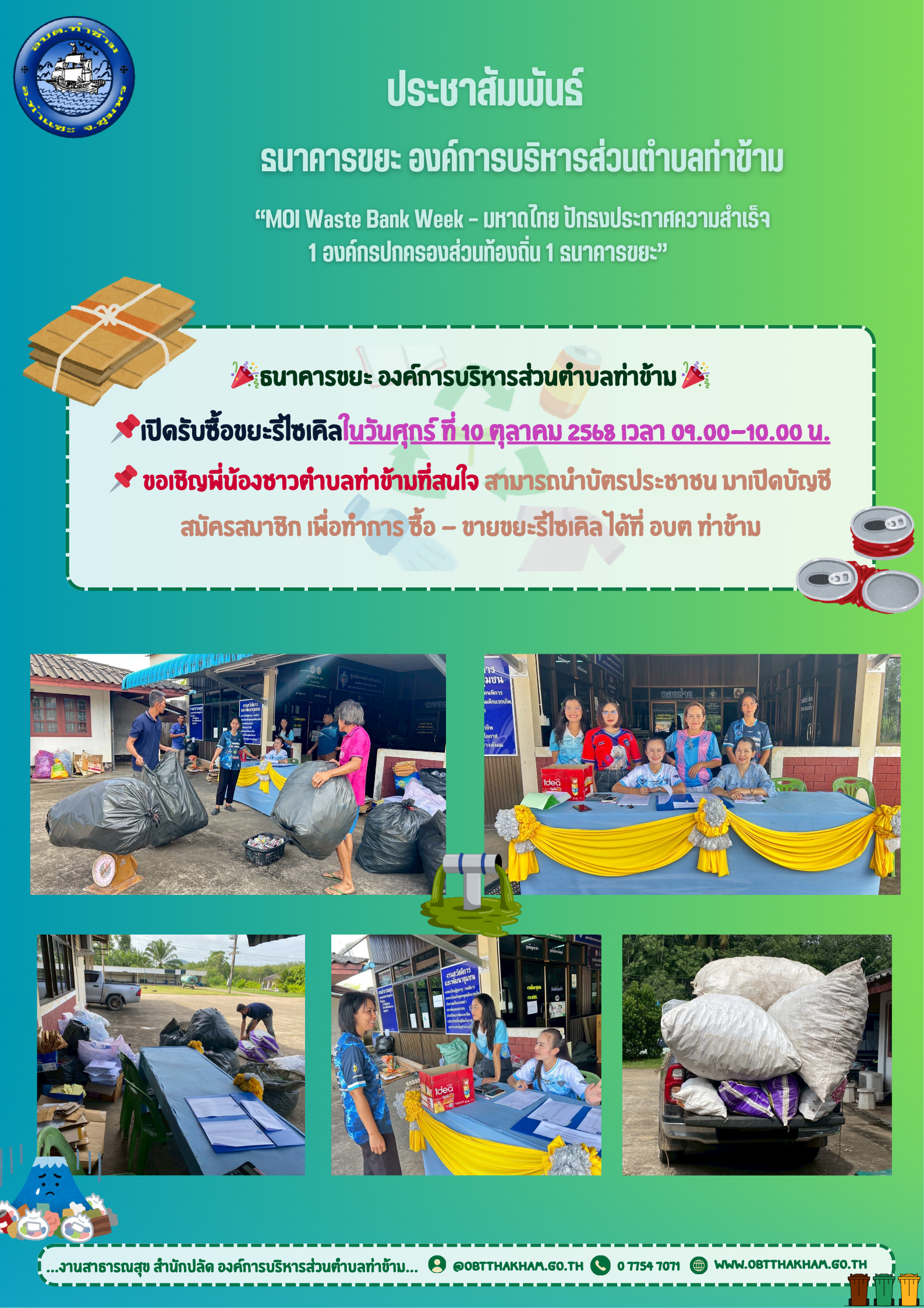 ประชาสัมพันธ์ธนาคารขยะ องค์การบริหารส่วนตำบลท่าข้าม ประจำเดือนตุลาคม 2568