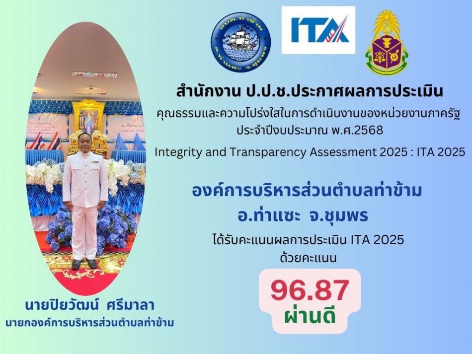 ประกาศผลการประเมินคุณธรรมและความโปร่งใสในการดำเนินงานของหน่วยงานภาครัฐ (Integrity and Transparency Assessment : ITA) ประจำปีงบประมาณ พ.ศ. 2568
