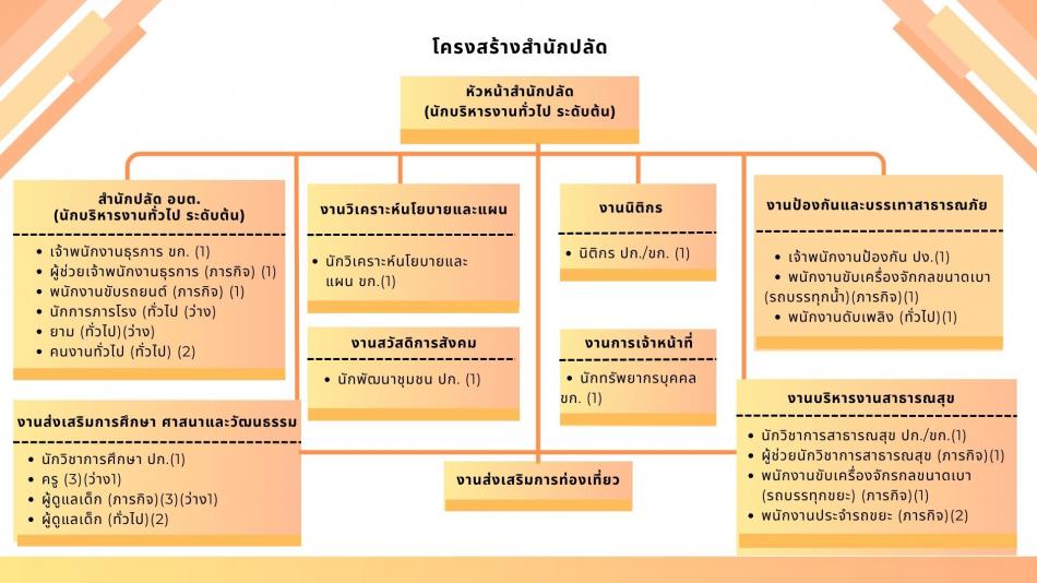 account_box ฝ่ายบริหาร account_box สมาชิกสภาฯ account_box หัวหน้าส่วนราชการ account_box สำนักปลัด account_box กองคลัง account_box กองช่าง check_circle แผนผังโครงสร้าง