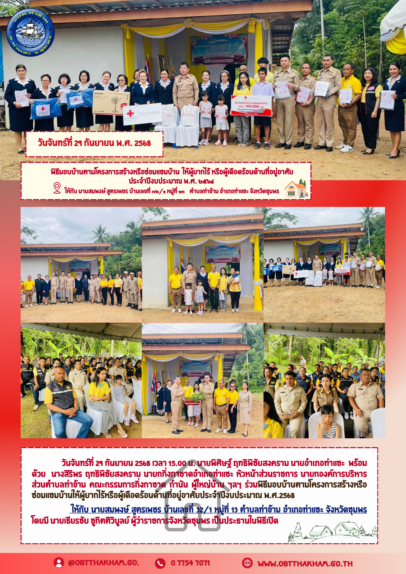 พิธีมอบบ้านตามโครงการสร้างหรือซ่อมแซมบ้าน ให้ผู้ยากไร้ หรือผู้เดือดร้อนด้านที่อยู่อาศัย ประจำปีงบประมาณ พ.ศ. ๒๕๖๘ [29 กันยายน 2568]