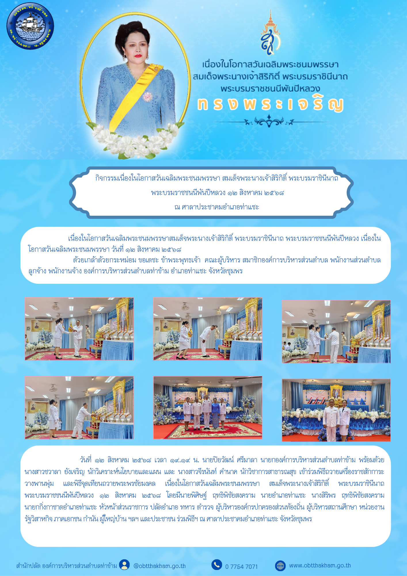 กิจกรรมเนื่องในโอกาสวันเฉลิมพระชนมพรรษา สมเด็จพระนางเจ้าสิริกิติ์ พระบรมราชินีนาถ พระบรมราชชนนีพันปีหลวง ๑๒ สิงหาคม ๒๕๖๘ ณ ศาลาประชาคมอำเภอท่าแซะ [13 สิงหาคม 2568]