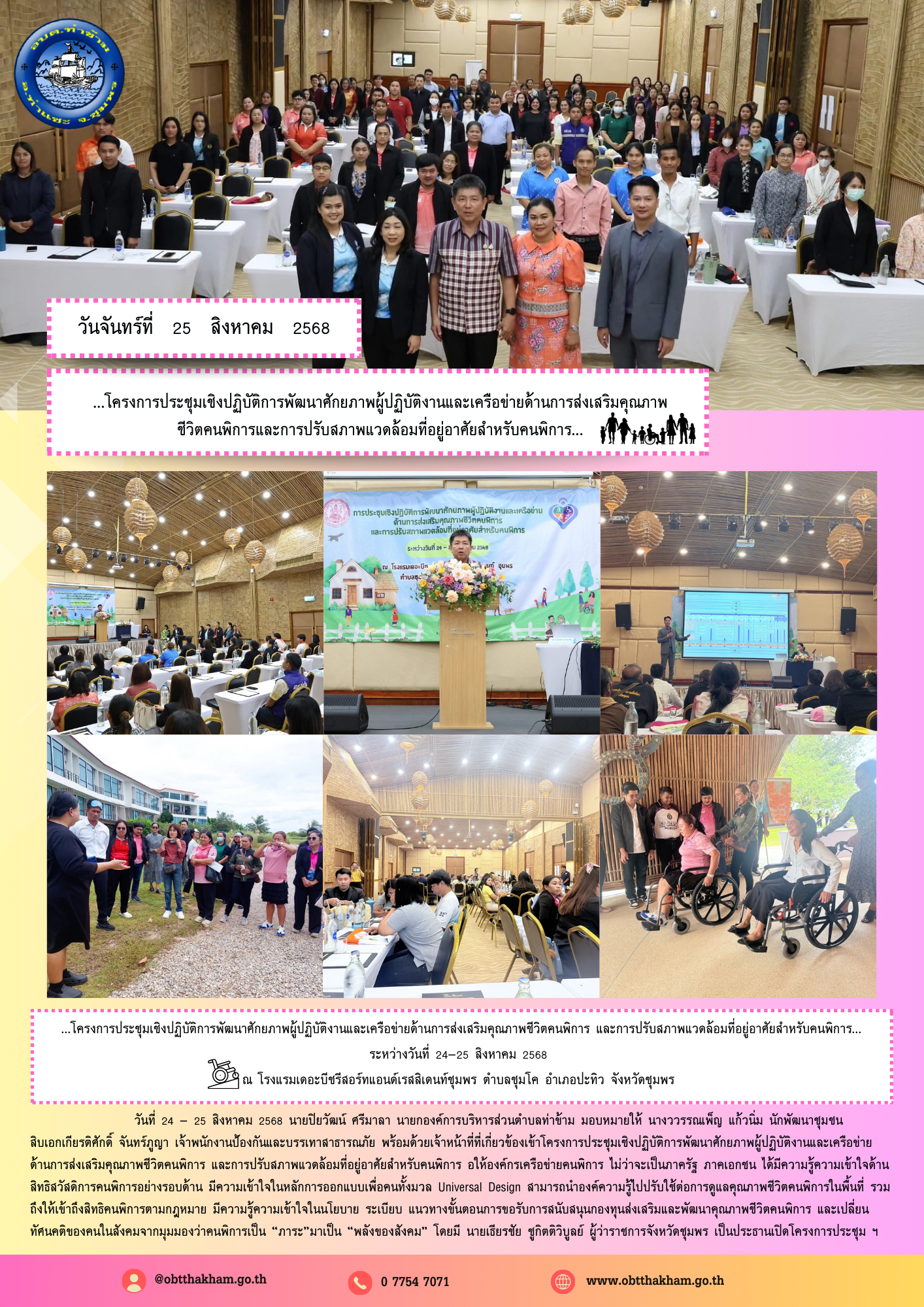 ...โครงการประชุมเชิงปฏิบัติการพัฒนาศักยภาพผู้ปฏิบัติงานและเครือข่ายด้านการส่งเสริมคุณภาพชีวิตคนพิการและการปรับสภาพแวดล้อมที่อยู่อาศัยสำหรับคนพิการ... [27 สิงหาคม 2568]