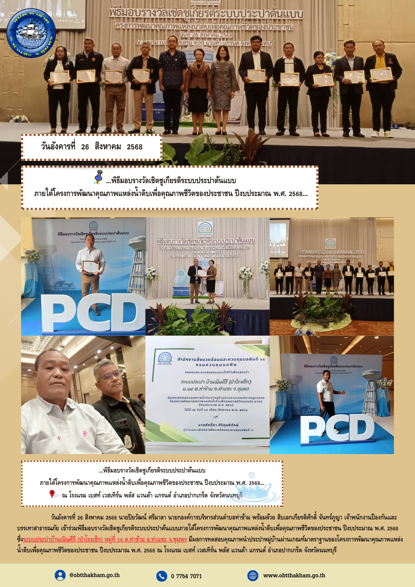 ..พิธีมอบรางวัลเชิดชูเกียรติระบบประปาต้นแบบ ภายใต้โครงการพัฒนาคุณภาพแหล่งน้ำดิบเพื่อคุณภาพชีวิตของประชาชน ปีงบประมาณ พ.ศ. 2568... [27 สิงหาคม 2568]