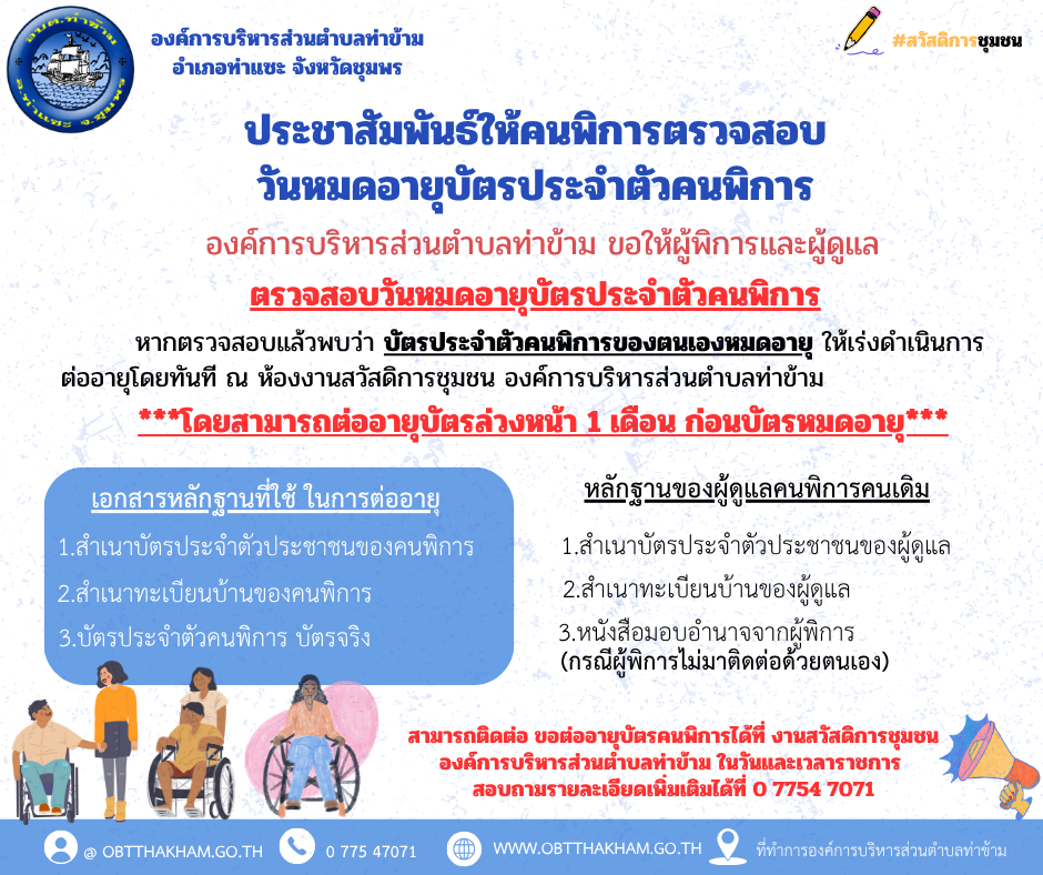 แจ้งประชาสัมพันธ์ให้คนพิการและผู้ดูแล ตรวจสอบวันหมดอายุของบัตรประจำตัวคนพิการ [21 ตุลาคม 2568]